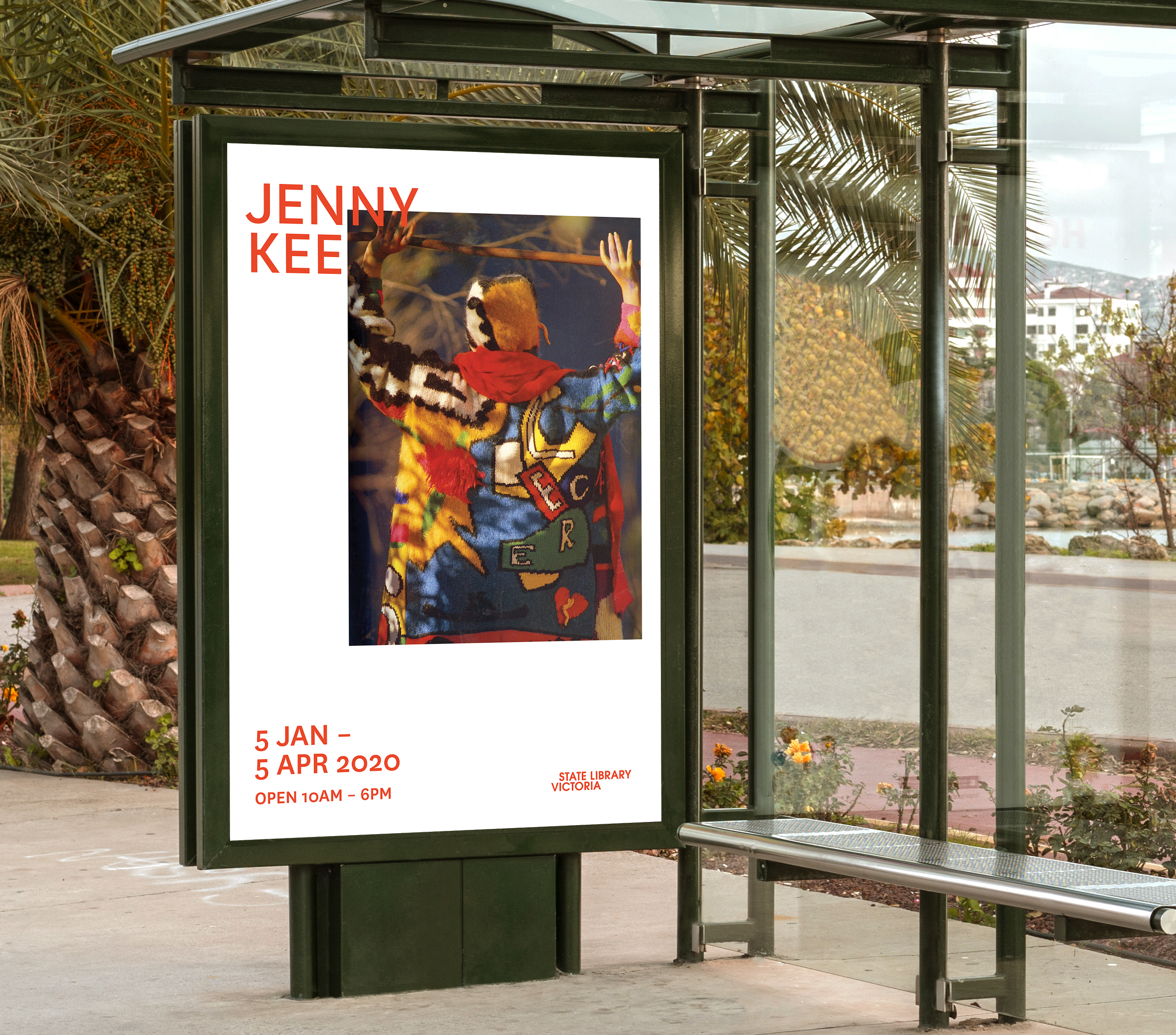 Exhibition identity design for Jenny Kee’s exhibition at the State Library of Victoria, as part of its expansion, ‘Vision 2020’. The identity includes a series of poster designs, a teaser film and a set of facade flags to capture the Jenny Kee’s artworks.